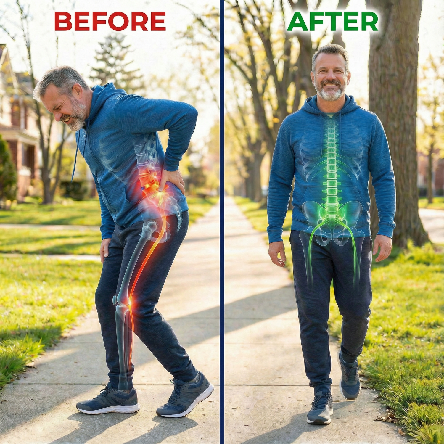 Creates measurable space between L4-L5 and L5-S1 vertebrae to release pressure on your sciatic nerve. Same technique used by physical therapists.